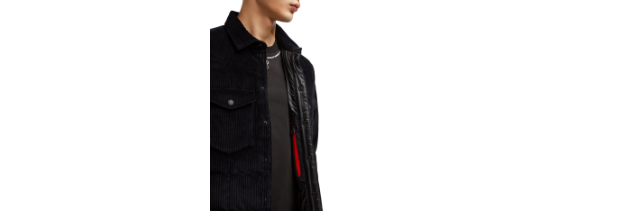 Conçue en velours côtelé, la shacket en duvet Gelt est une version moderne des vêtements d'extérieur décontractés. La coupe droite de la veste-chemise se pare de nombreux détails d'inspiration surchemise, comme un col pointu classique, des poches poitrine et un devant à bouton-pression.