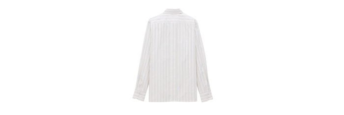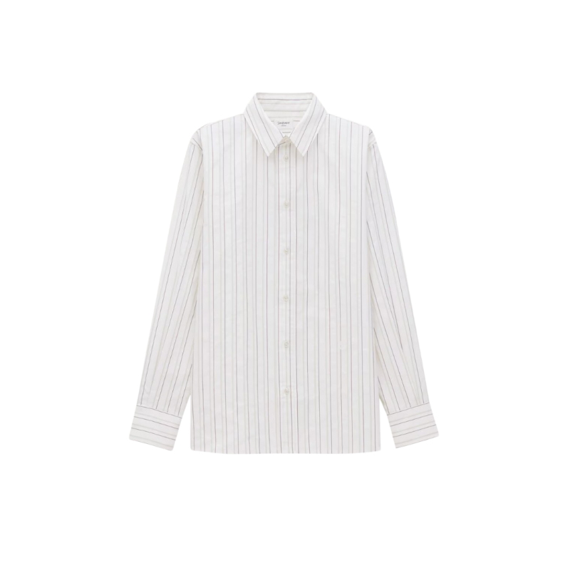 SAINT LAURENTChemise Cassandre coton blanc rayure tennis kaki marron