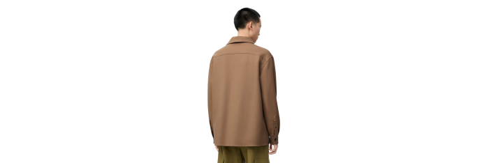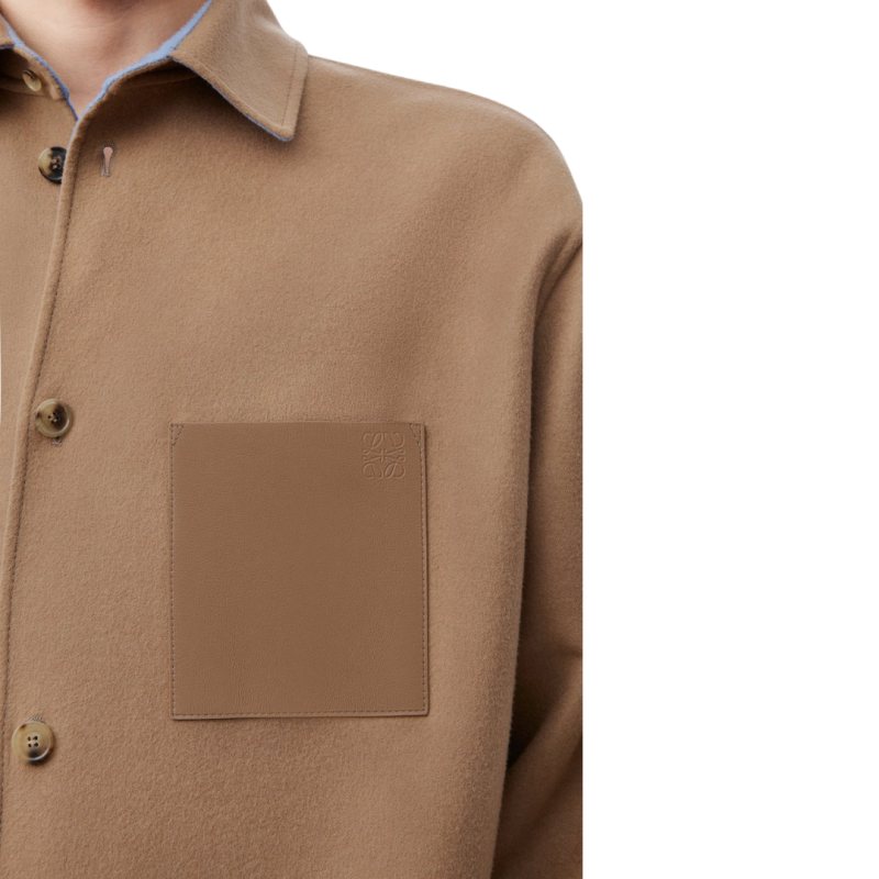 Surchemise en mélange double face bicolore léger de laine et cachemire.