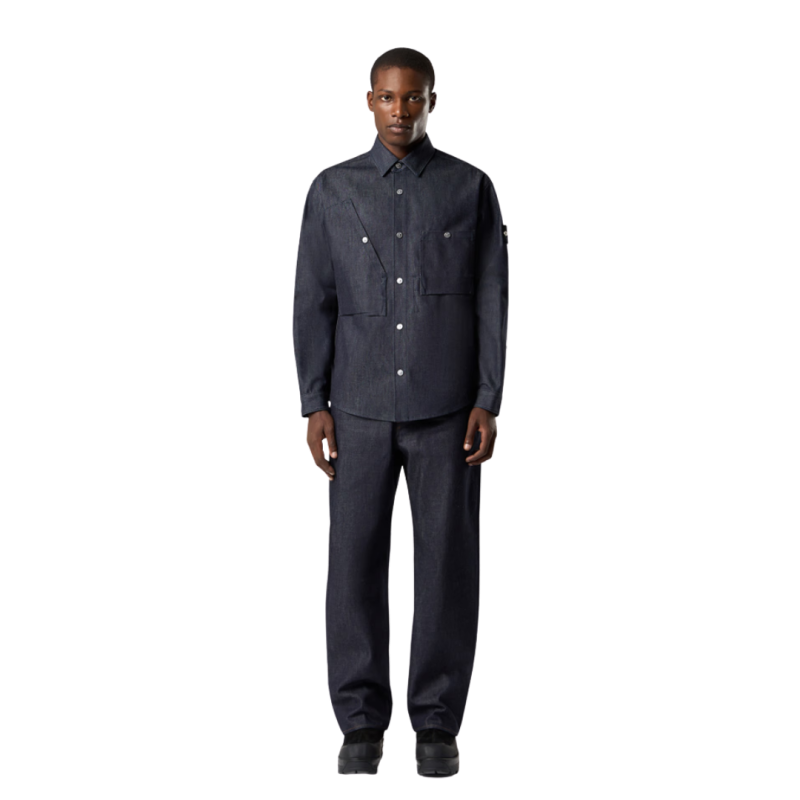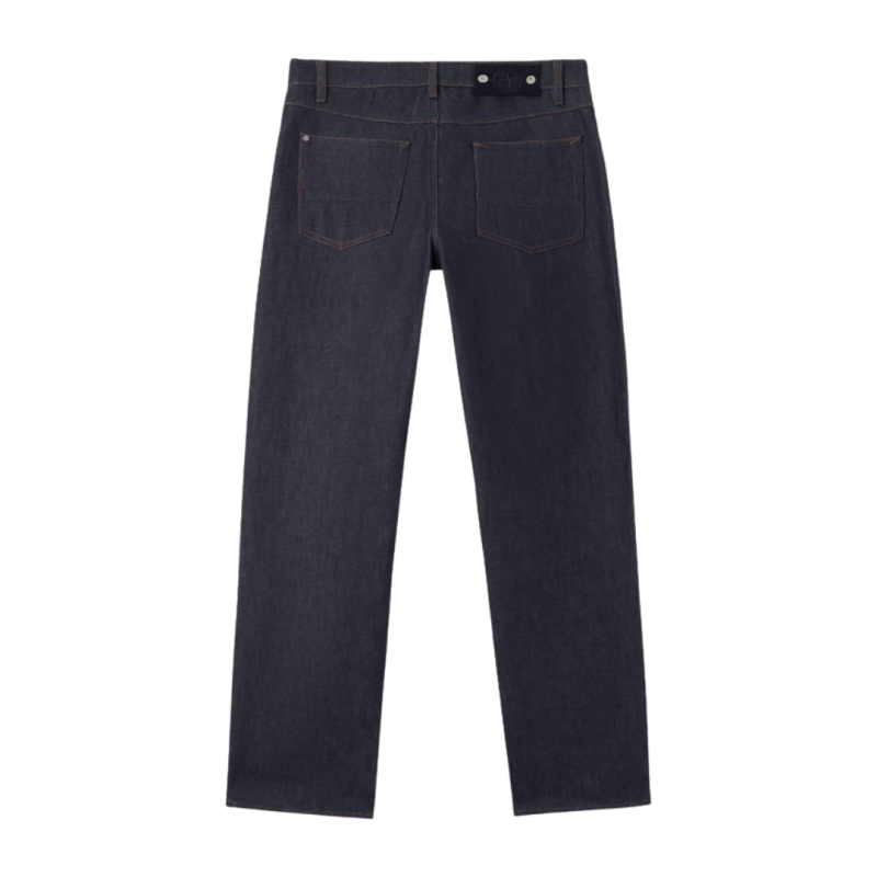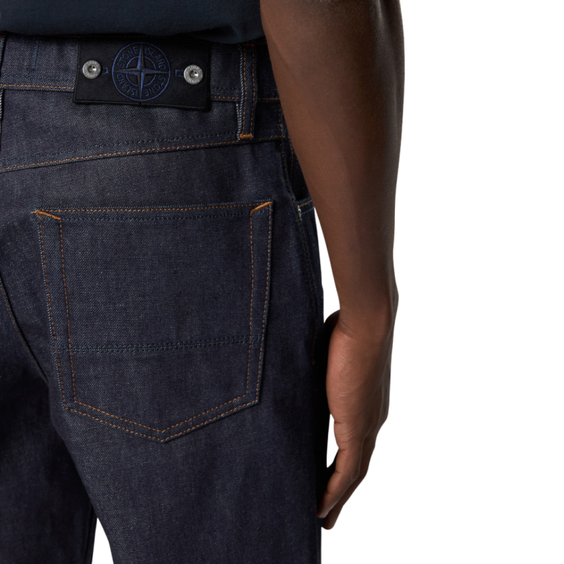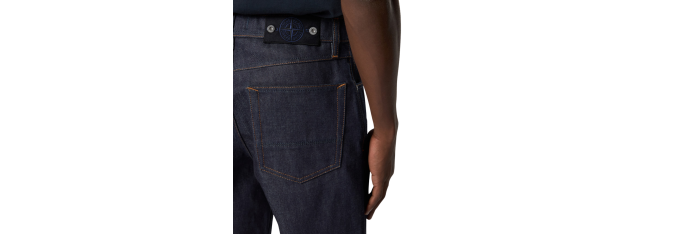 Poches mains incurvées avec poche à monnaie sur le côté droit et petite étoile brodée sous la poche gauche. Au dos, au niveau de la taille, badge Stone Island Denim Research avec boutons en métal. Poches arrière plaquées avec fond doublé renforcé et surpiqûre horizontale. Surpiqûres contrastantes sur l’ensemble du vêtement. Braguette boutonnée dissimulée avec bouton supérieur noir apparent. Coupe ample.