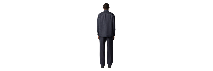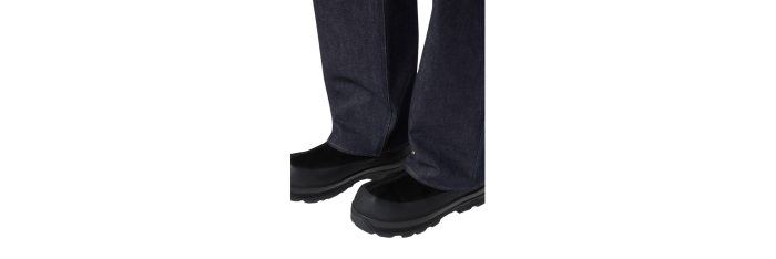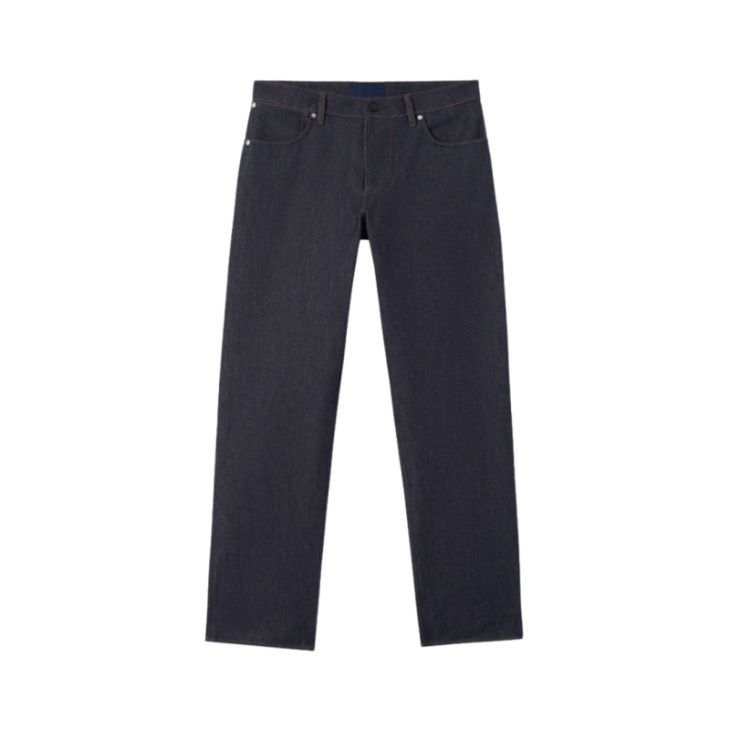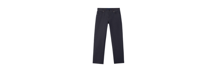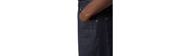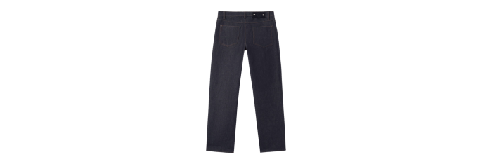 Jean à cinq poches en denim 13,5 oz, tissé avec du fil de coton biologique teint à l’indigo selon un tissage sergé à 4 fils qui forme le motif diagonal caractéristique du denim. Le vêtement fini, qui ne subit plus de rinçage ni de traitement, épousera les mouvements du corps et libérera naturellement sa couleur au fil du temps, soulignant les qualités intrinsèques et distinctives du denim brut.
