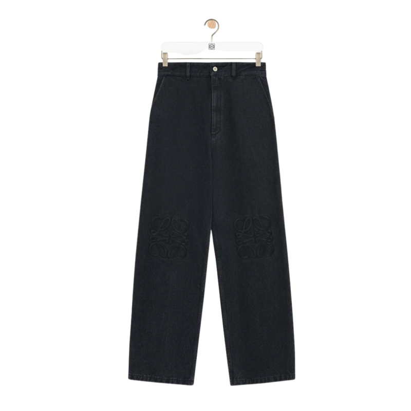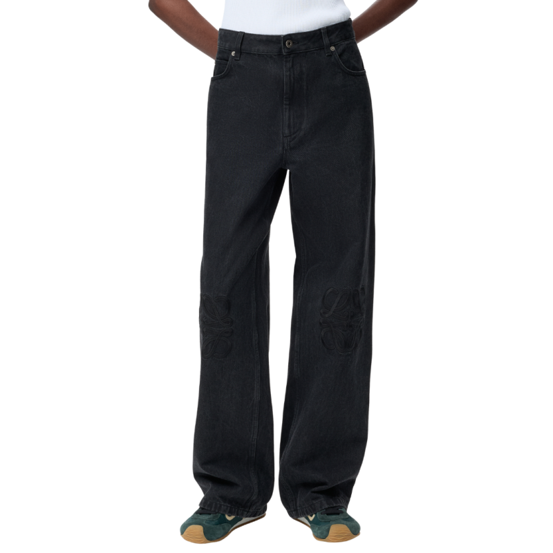 LOEWEJean Baggy denim coton noir anagramme genoux