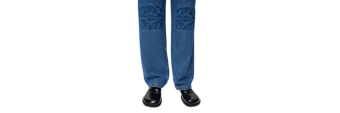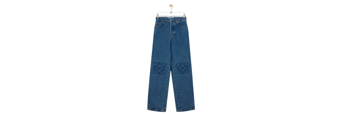 LOEWEPantalon jean baggy denim coton lavé bleu anagramme genoux