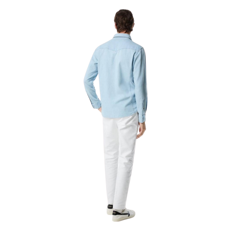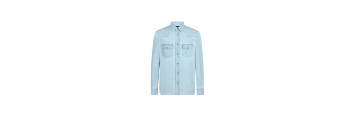 TOM FORDChemise Western coton jean bleu ciel poche plaquée bouton nacre