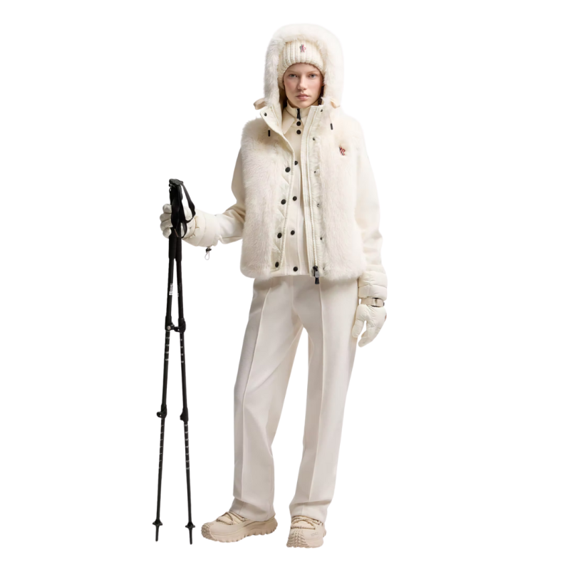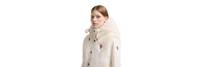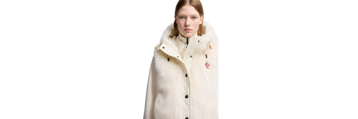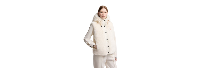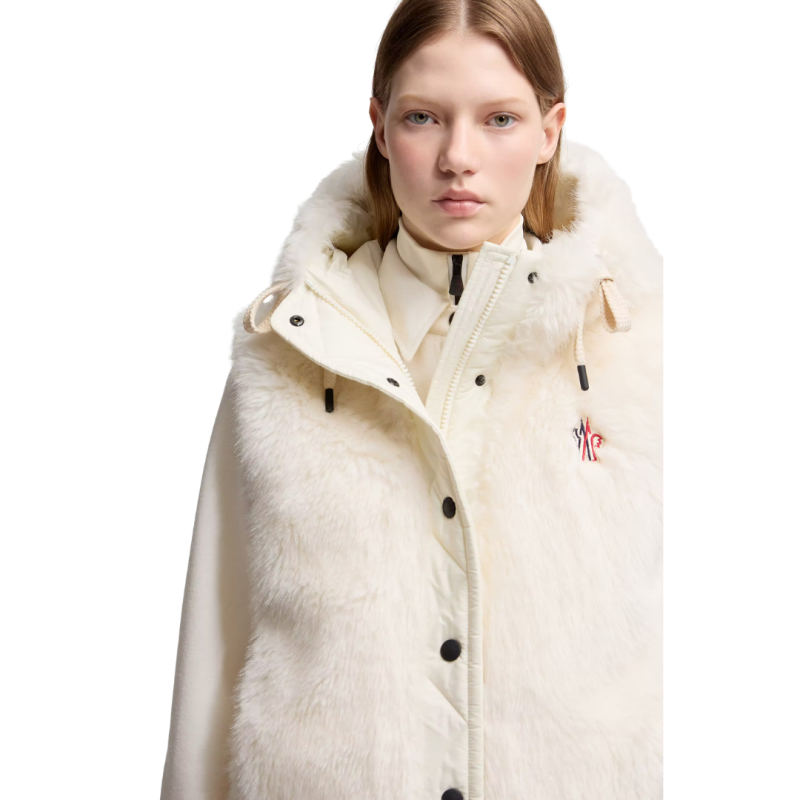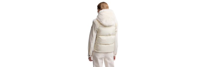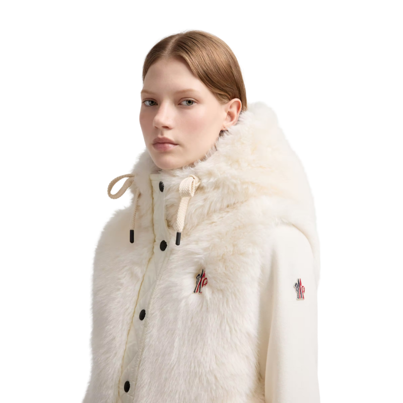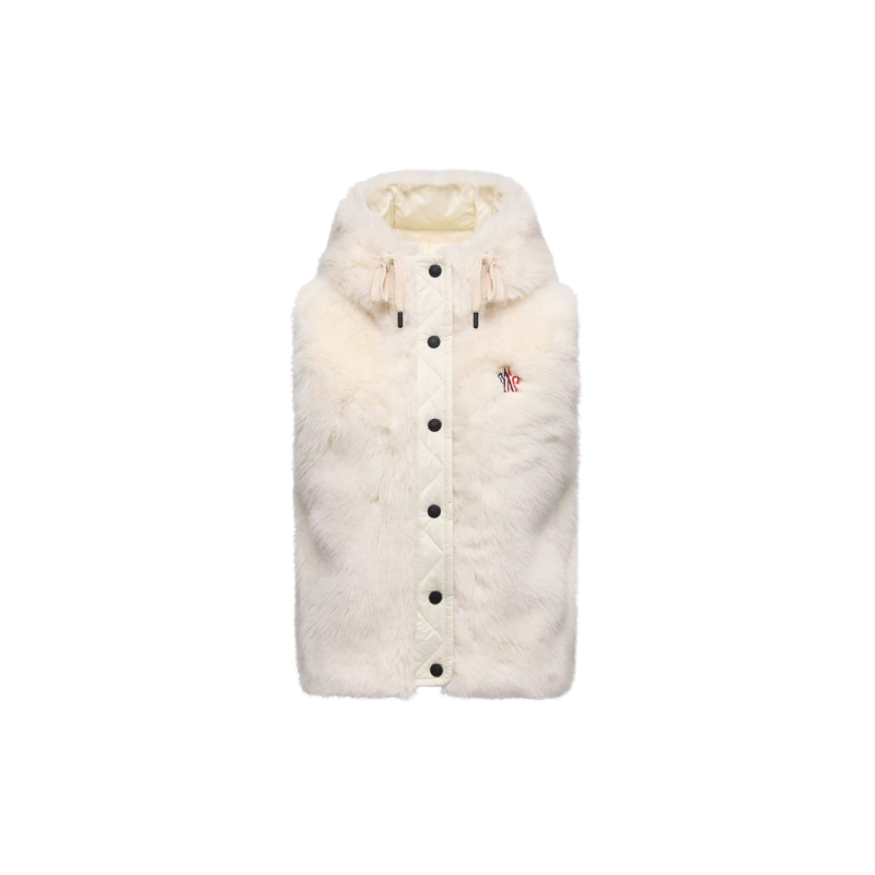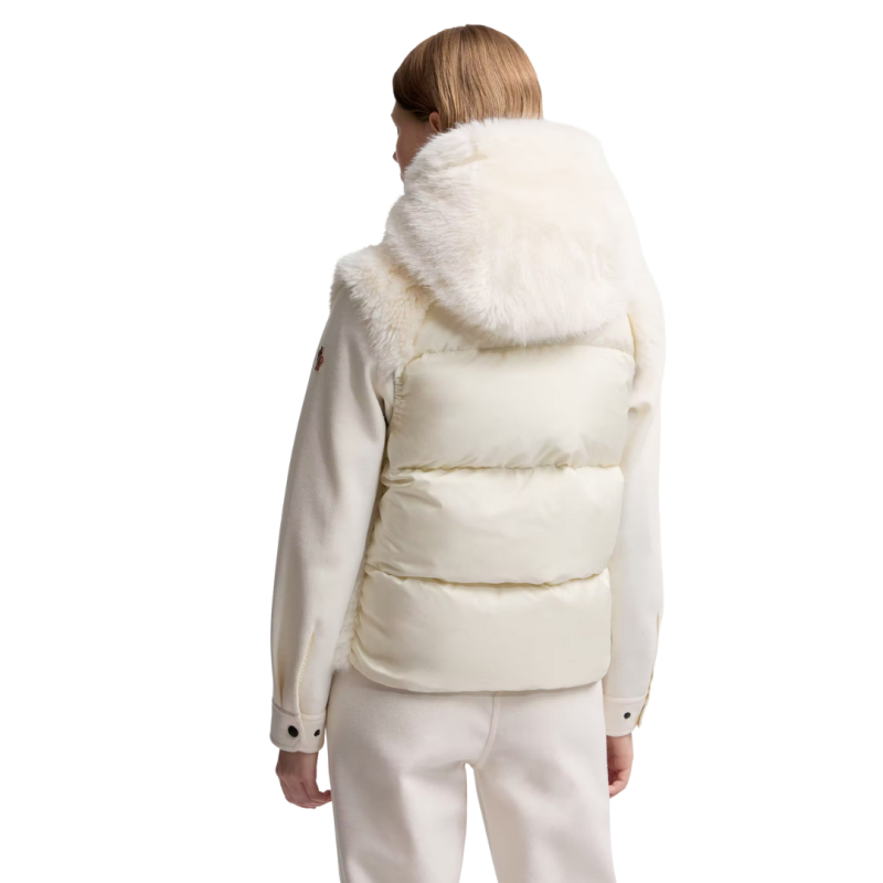 MONCLERDoudoune Gilet sans manche à capuche Arve bouton pression teddy molletonné écru Grenoble