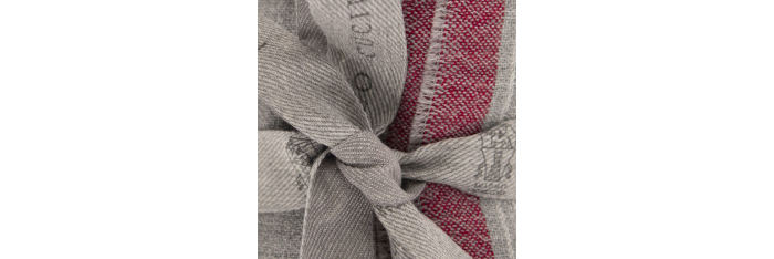 BRUNELLO CUCINELLIEcharpe laine grise rayures bordeaux