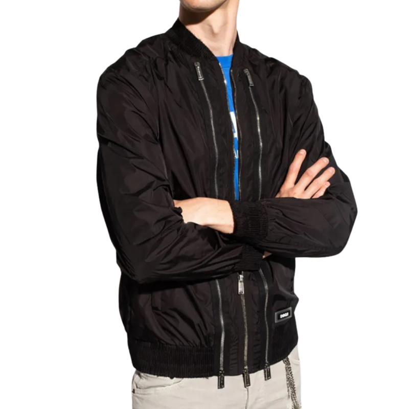 Blouson bomber viscose soie noire motifs Palmiers ton sur...