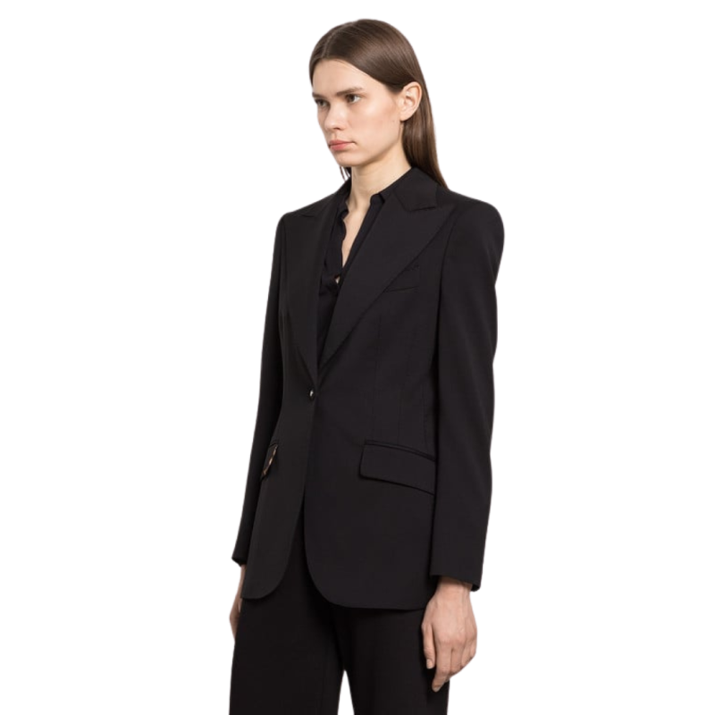 DOLCE & GABBANAVeste blazer un bouton laine noire doublure léopard