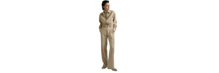 BARBARA BUICombinaison pantalon laine flanelle sable col chemise ceinture
