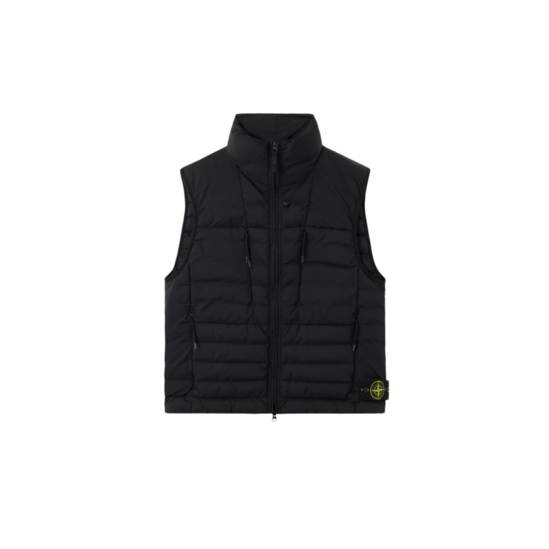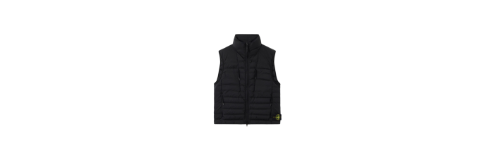 STONE ISLANDGilet sans manche doudoune nylon fin noir col montant