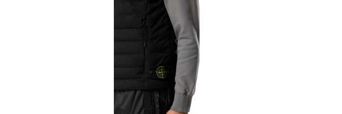 Col montant rembourré. Poches poitrine verticales à glissière disimulée. Poches mains verticales à glissière dissimulée. Badge Stone Island sur le côté inférieur gauche. Finition de bande élastique aux emmanchures. Cordon de serrage au niveau du bas. Glissière bidirectionnelle avec un bouton-pression sur la patte intérieure.