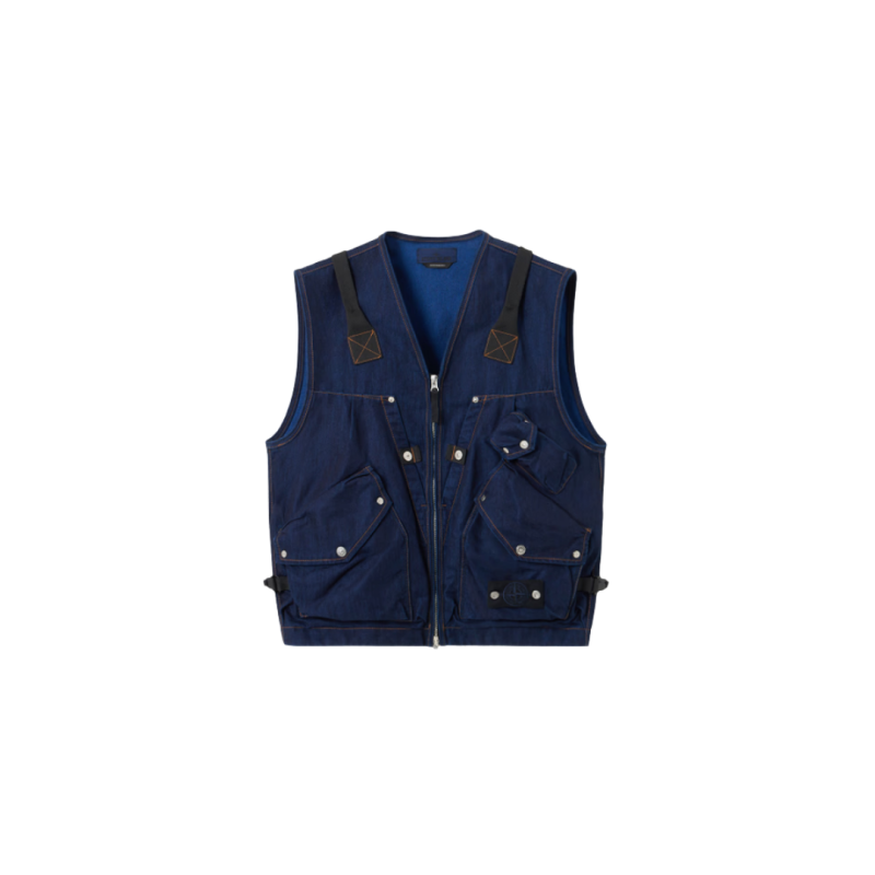 STONE ISLANDGilet sans manches Denim Research coton bleu brut rincé multi poches