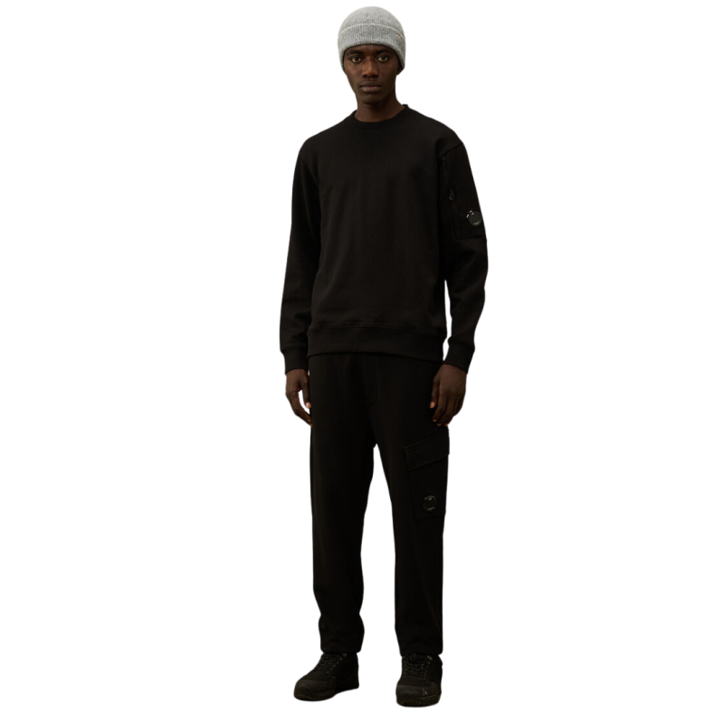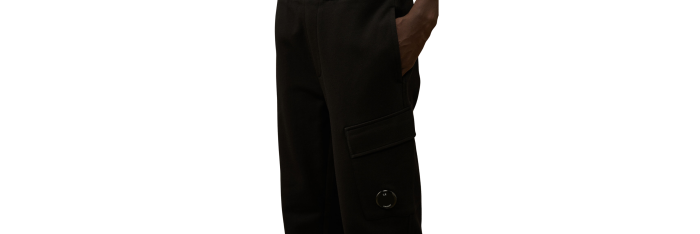 CP COMPANYPantalon de survêtement polaire coton noir poche cargo lentille