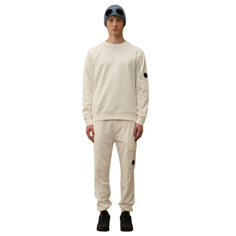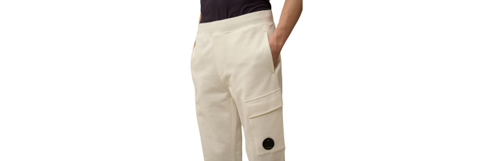 CP COMPANYPantalon survêtement cargo coton gaze diagonal blanc