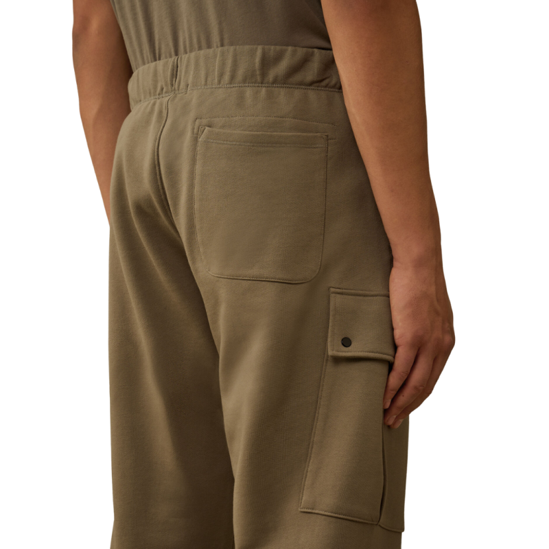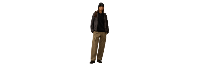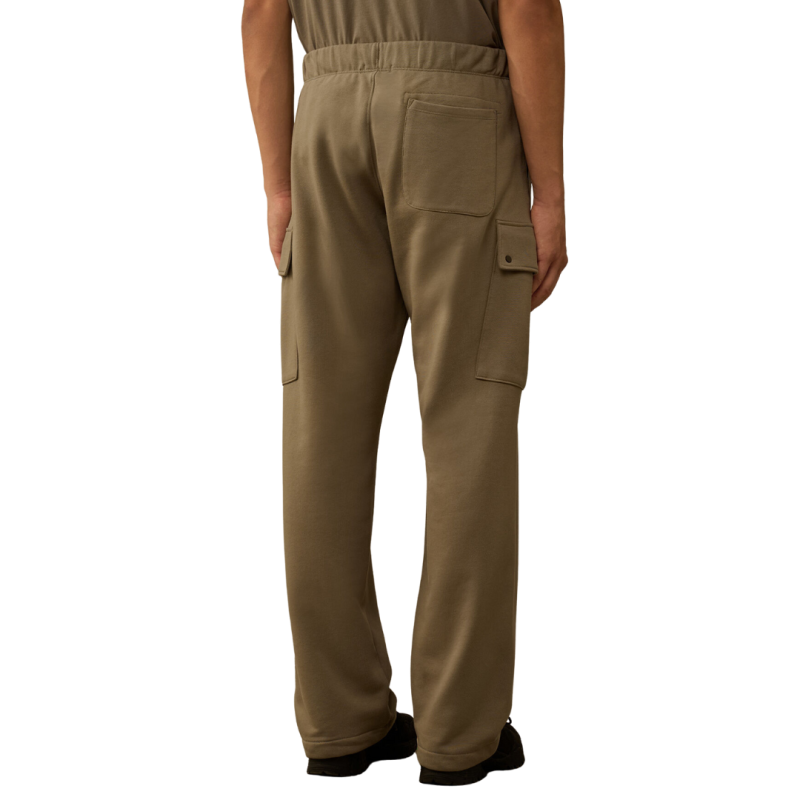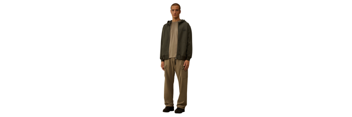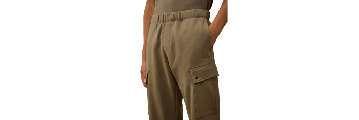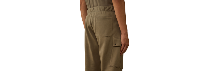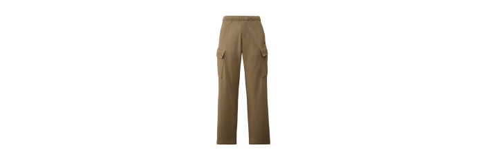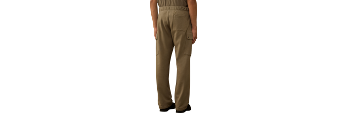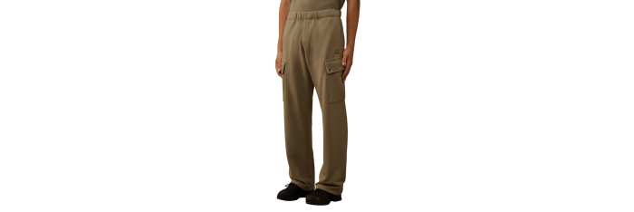Pantalon de survêtement cargo confectionné en molleton à relief diagonal, un coton brossé à tissage diagonal de poids moyen. Le tissu doux assure le confort et la facilité de mouvement. Le pantalon est doté d'un cordon de serrage réglable à la taille, d'une fermeture à boutons cachés et de poches latérales. Il est complété par des poches cargo à rabat, une poche arrière ouverte et un logo brodé. Fini avec des ourlets ajustables à cordon de serrage. Coupe régulière.