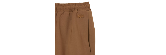 Lacoste insuffle une élégance raffinée au survêtement avec ce pantalon issu du défilé Automne/Hiver 2025. Il se distingue par sa coupe ample, un tissu technique premium en laine mélangée et des détails fonctionnels, à l'image de boutons-pression aux bas de jambes. Un crocodile signature brodé finalise son design entre mode et sport.