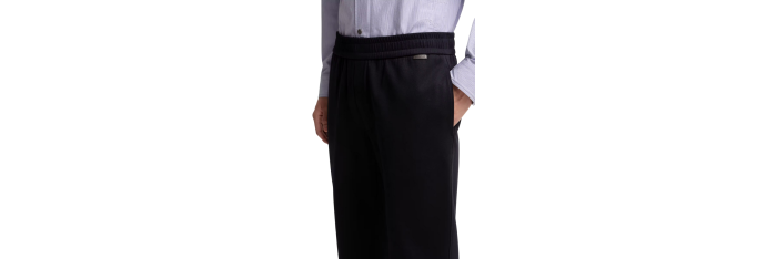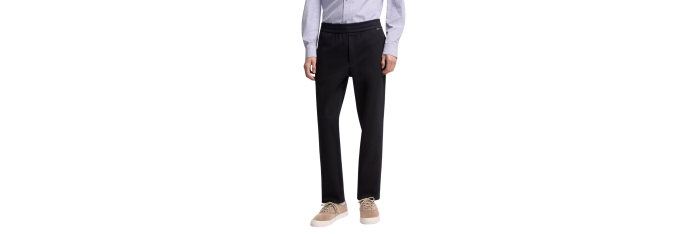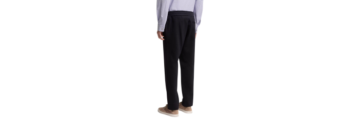 Reflétant subtilement l’esprit sophistiqué de la collection, ce pantalon offre une interprétation raffinée des vêtements décontractés. Confectionné en jersey double de coton mélangé, ce modèle présente une texture douce et chaude, tandis qu’une taille réglable assure un confort optimal. Portez-le avec des modèles assortis pour un total look raffiné.