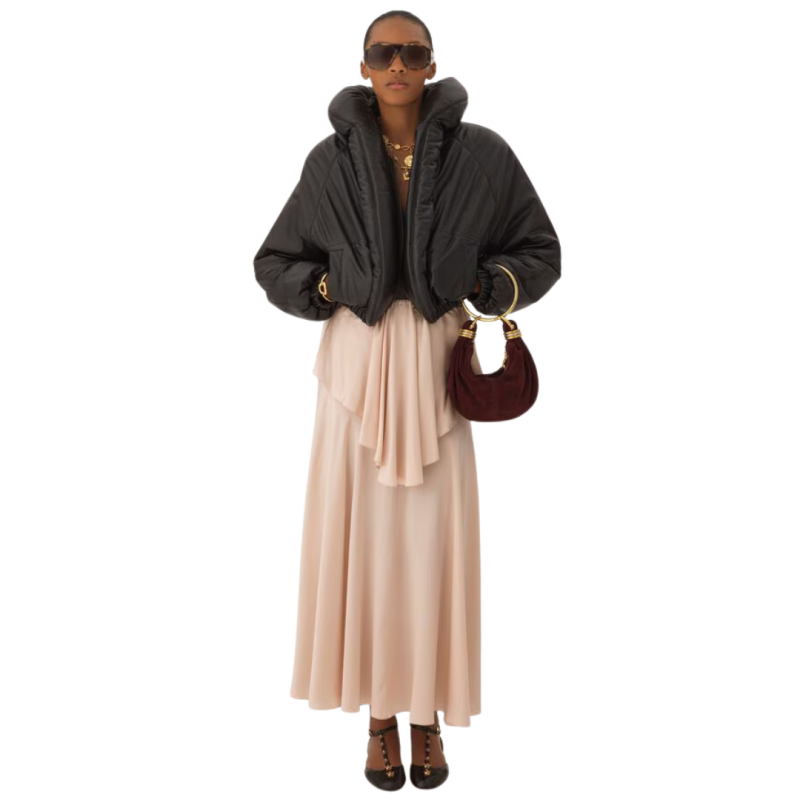 Ce produit a été réalisé par Marie-Hélène Couture, partenaire de longue date de Chloé basé à Morlaàs, en France. Marie-Hélène Couture excelle dans la technique spécialisée de la couture dite « floue ». Son savoir-faire répond aux normes rigoureuses de la certification « métiers de la mode, vêtement flou », garantissant un haut niveau d'aptitude professionnelle dans cette forme d'art délicate et exigeante.