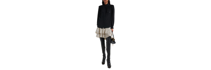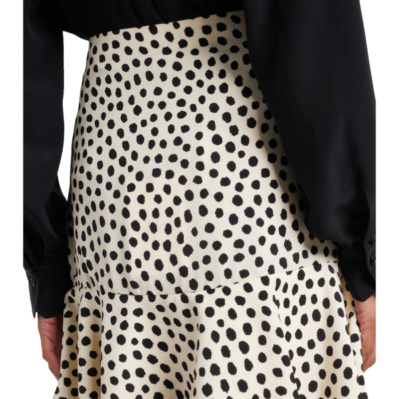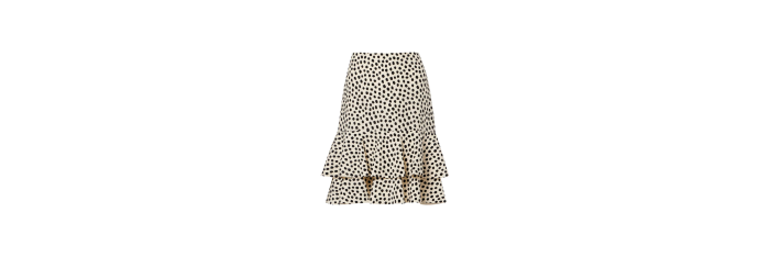 Réputées pour leur esthétique libre d'esprit, les créations de Chloé se caractérisent par une allure romantique avec une touche parisienne. Réalisée en Italie en pure soie, cette mini-jupe présente une silhouette à volants à pois irréguliers.