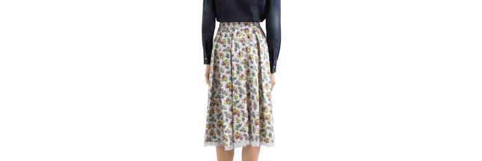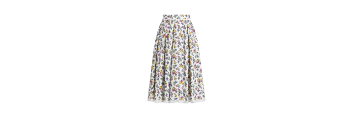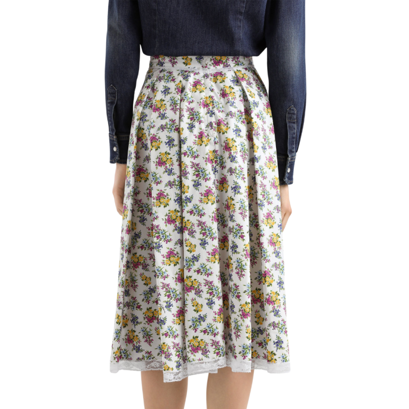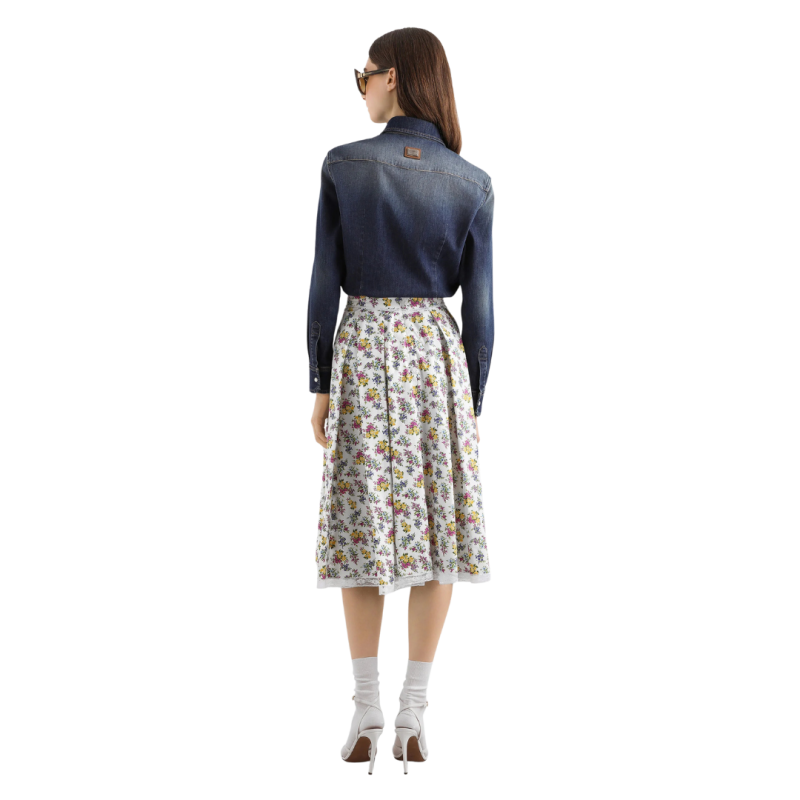 DOLCE & GABBANAJupe midi ample popeline coton blanc fleurs jaune mauve