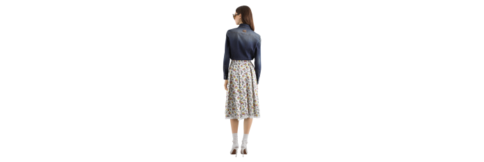 Cette jupe plissée ample incarne l'élégance intemporelle et apportera une touche de sophistication florale à votre garde-robe. Confectionnée en popeline à imprimé fleuri, elle offre une allure fraîche et romantique en toute occasion.