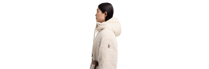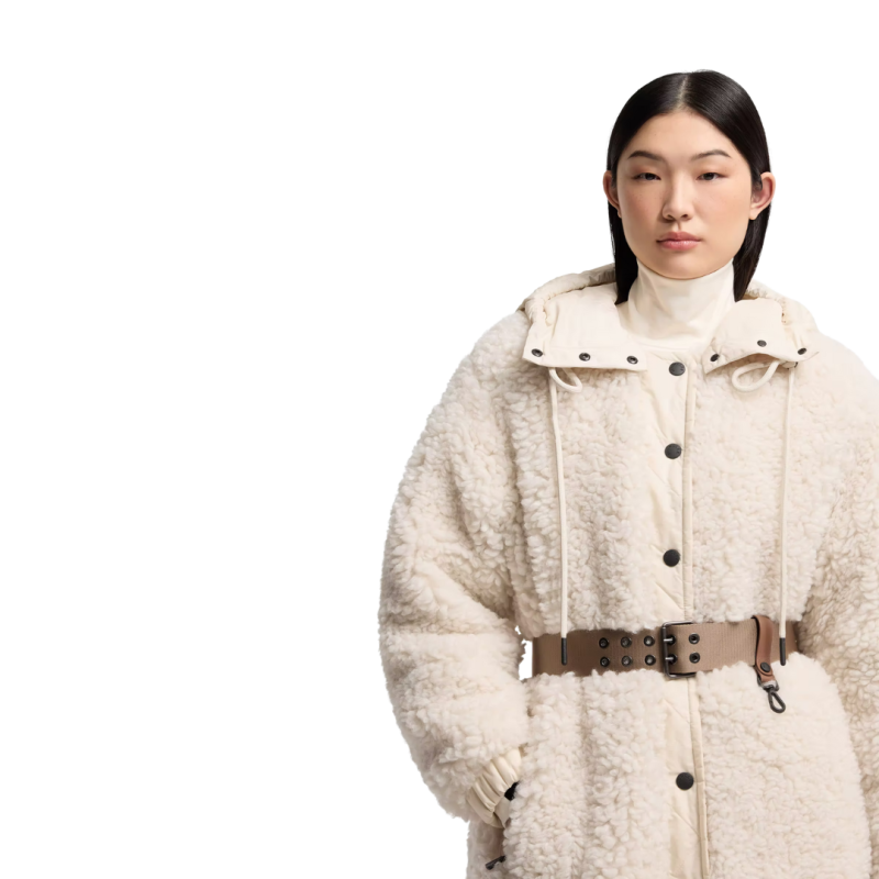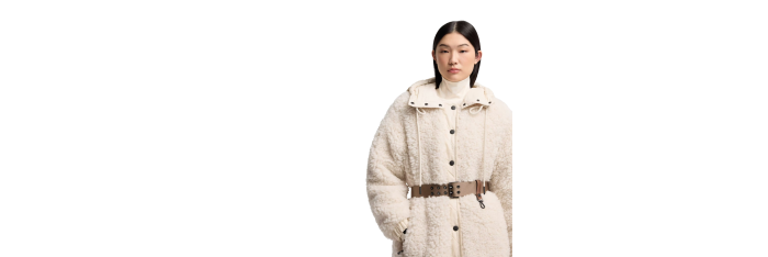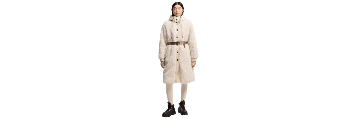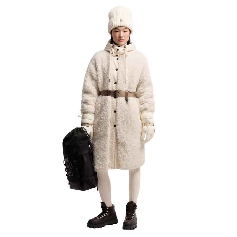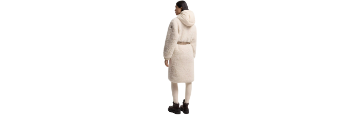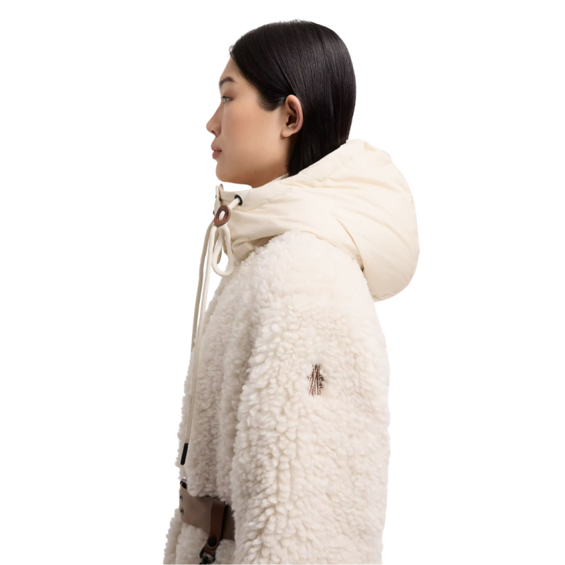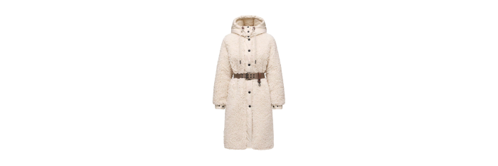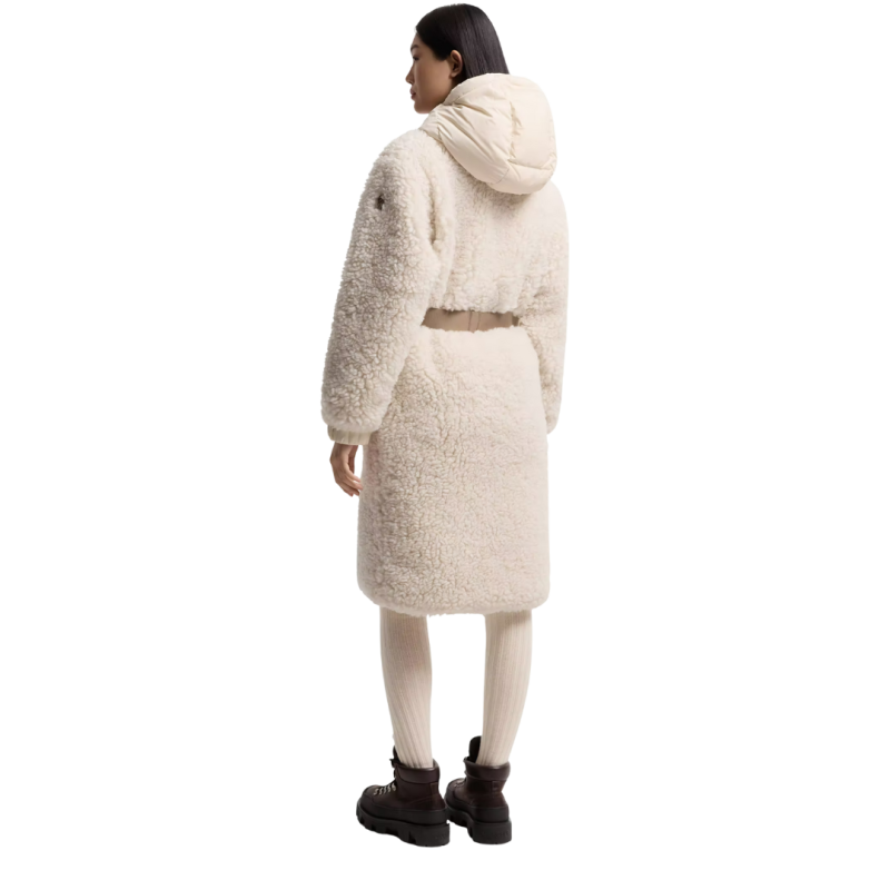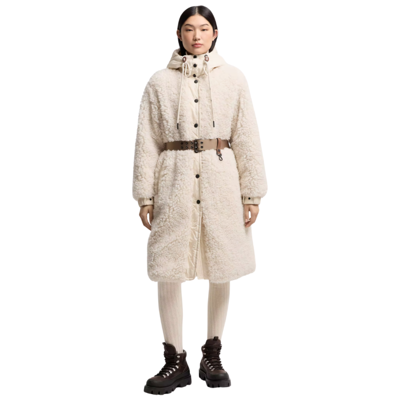 MONCLERDoudoune longue à capuche Blavet nylon écru polaire teddy ceinture Grenoble
