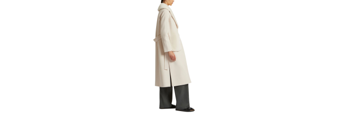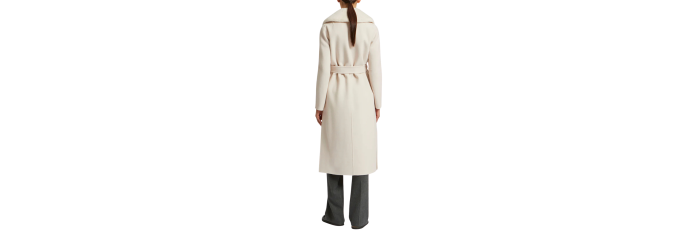 Manteau long et fendu sur les côtés confectionné en lainage cachemire double-face. Doté d’un col tailleur, de deux poches plaquées et d’une ceinture pour ajuster la silhouette, ce modèle joue avec les codes du masculin féminin. Un style qui peut se transformer au cours de la journée en ajoutant un col ainsi que des sur-poches en fourrure de vison amovibles. Des détails élégants qui s’attachent parfaitement à ce manteau versatile grâce à un système de boutons.