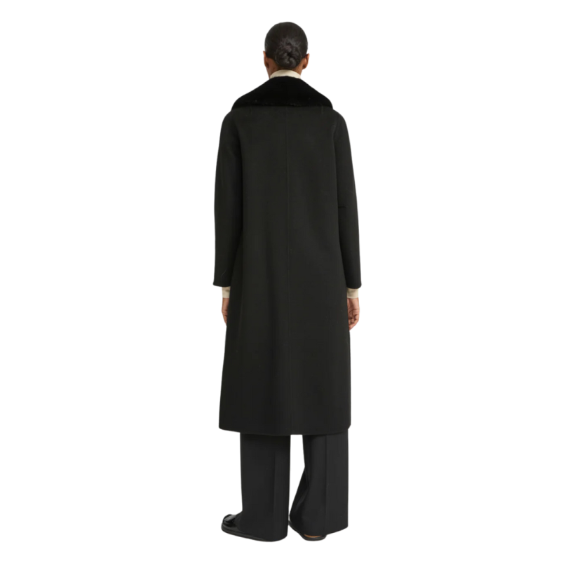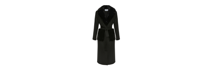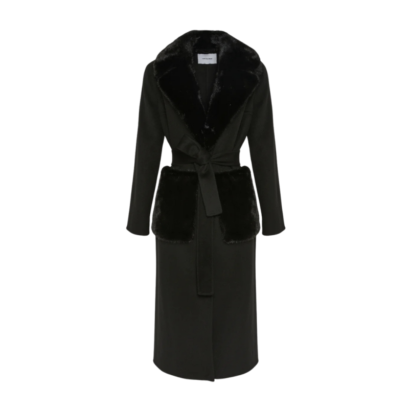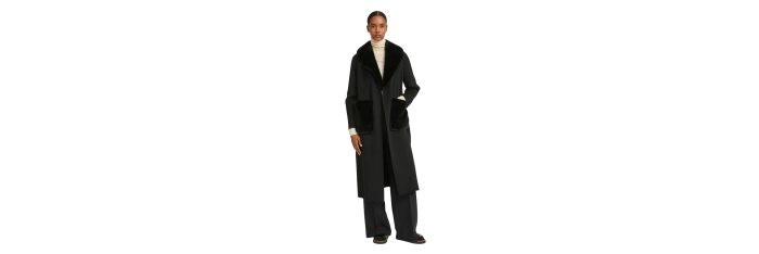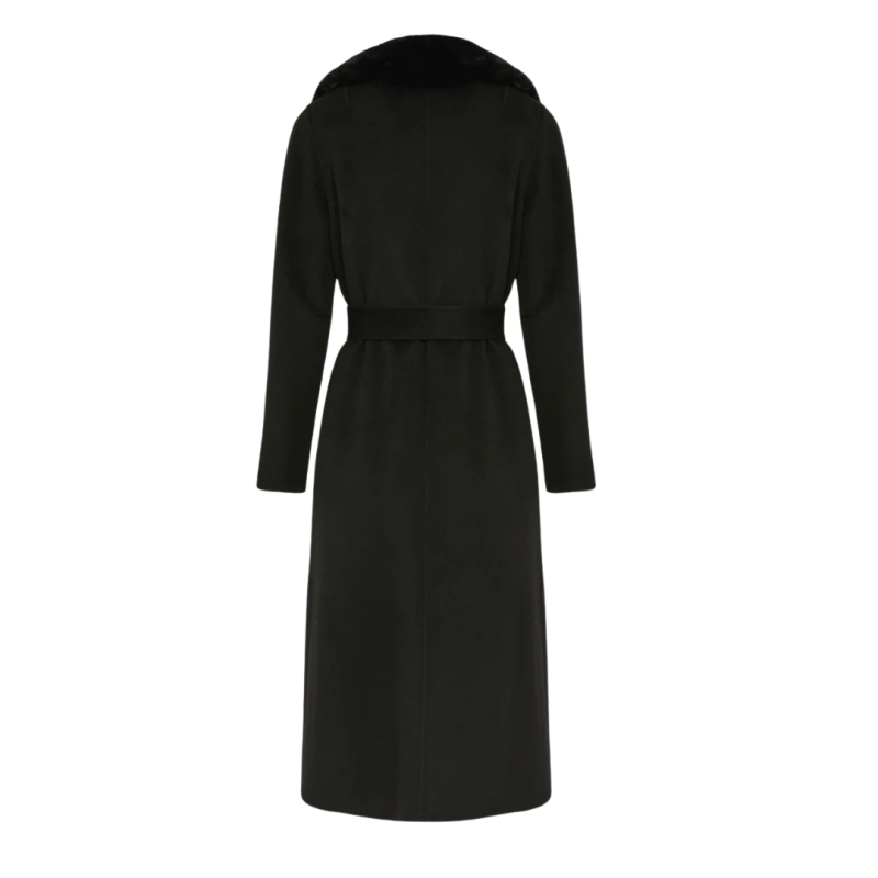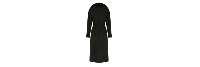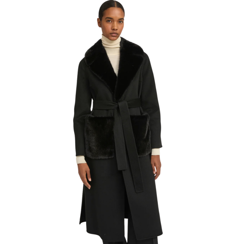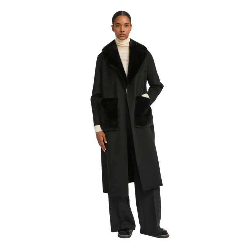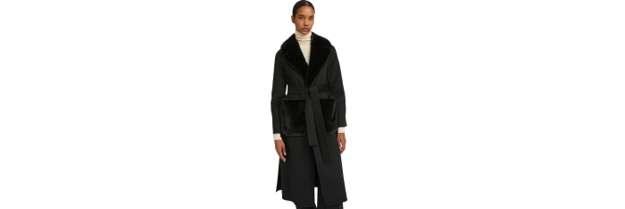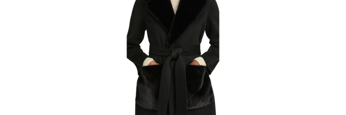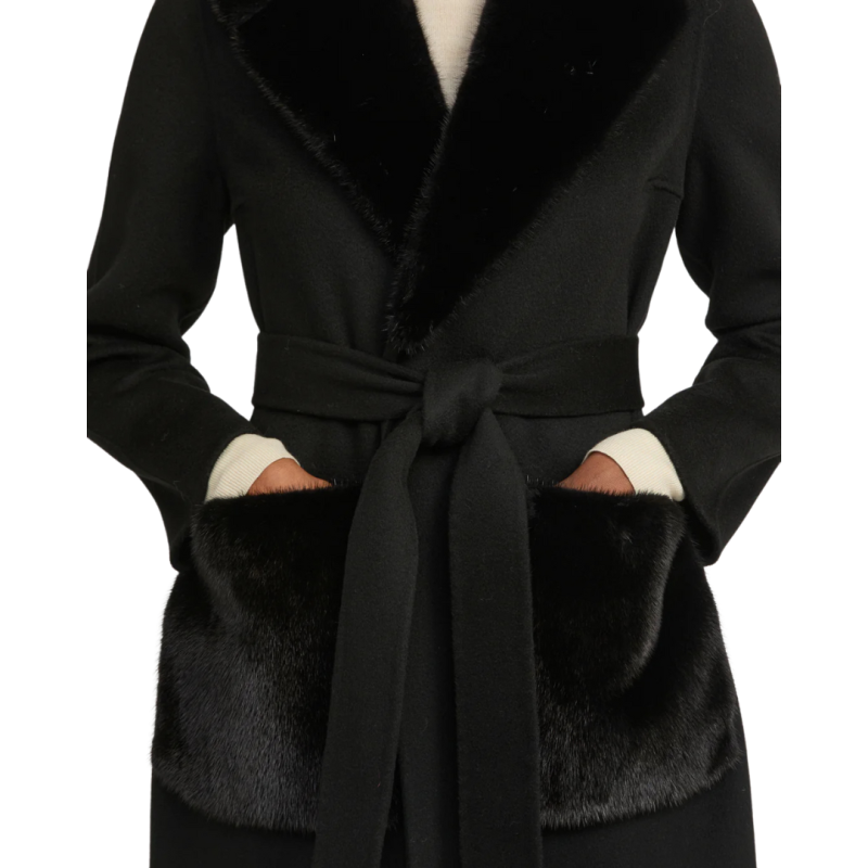 Manteau ceinturé en lainage cachemire avec col et sur-poches en fourrure de vison