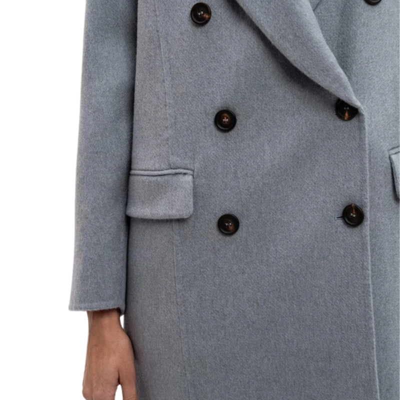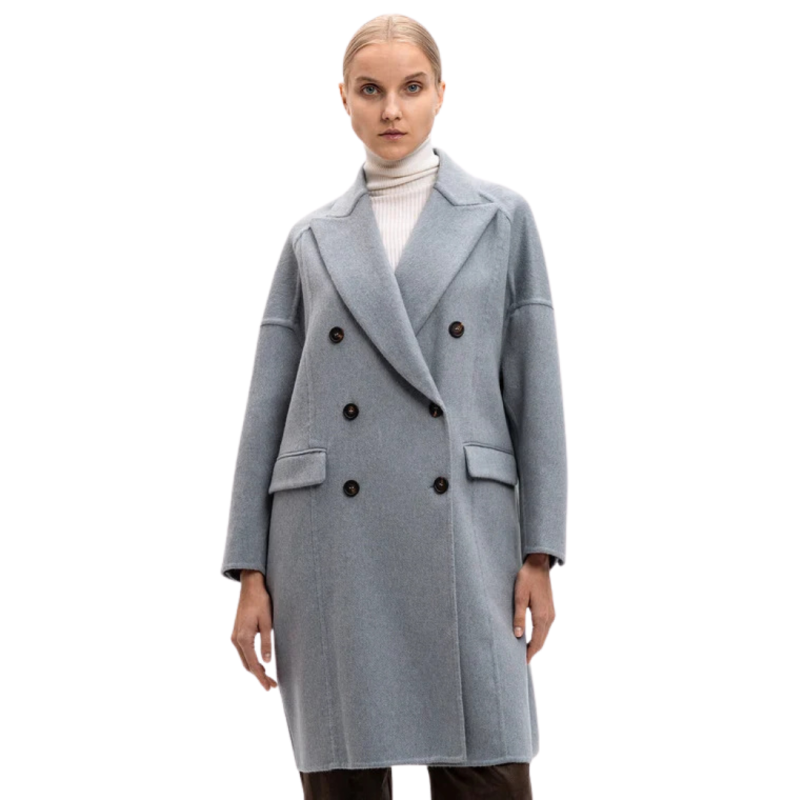 BRUNELLO CUCINELLIManteau finition main Beaver croisé cachemire bleu ornement Monile
