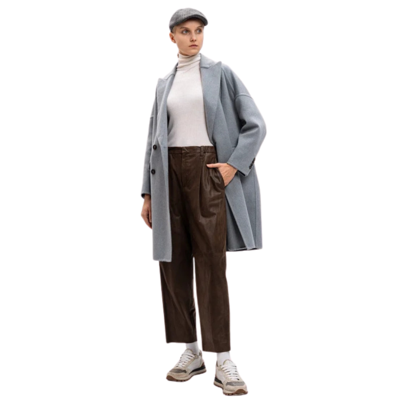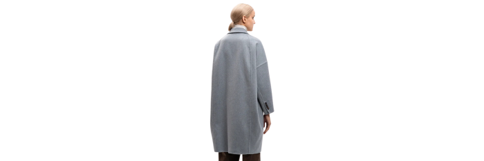 Des tissus prestigieux renforcent le style recherché et enveloppant du manteau double épaisseur. Le doux tissu beaver de cachemire est travaillé avec deux épaisseurs de tissu assemblées pour créer une pièce à texture compacte et extraordinairement souple. La coupe over est accentuée par les grands revers, par le boutonnage croisé et par les manches amples. La précieuse application en Monile constitue un détail lumineux délicat.