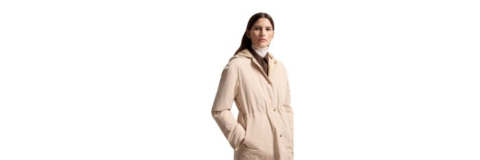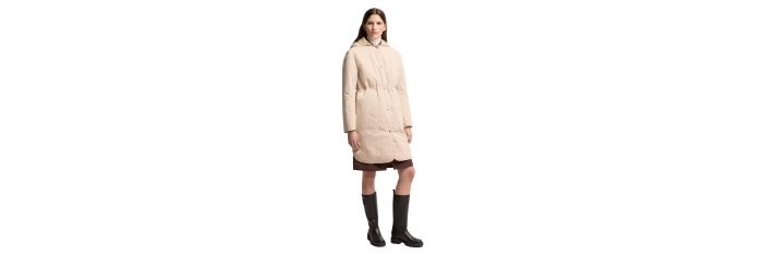 EXTERIEUR: 56% Polyamide, 44% Polyester; DOUBLURE: 100% Polyamide; DOUBLURE CAPUCHE: 100% Polyamide; REMBOURRAGE: 90% Duvet, 10% Duvet; REMBOURRAGE DETAILS: 100% Polyester;ÉTIQUETTE EN CUIR: veau