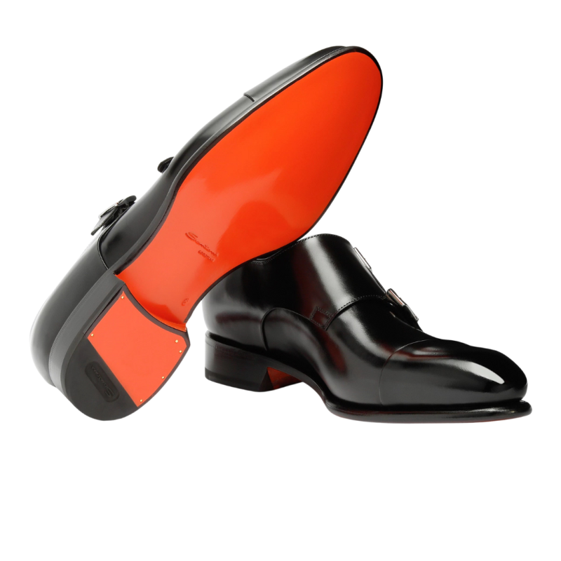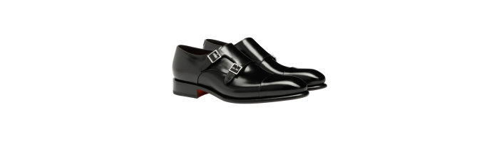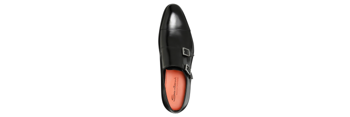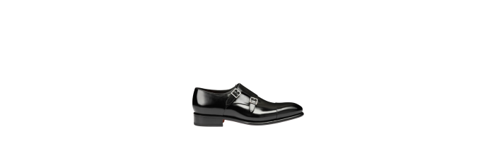 SANTONIChaussure à double boucle cuir patiné noir Essentials