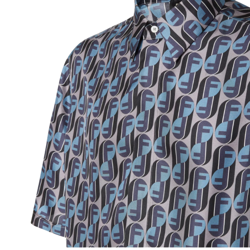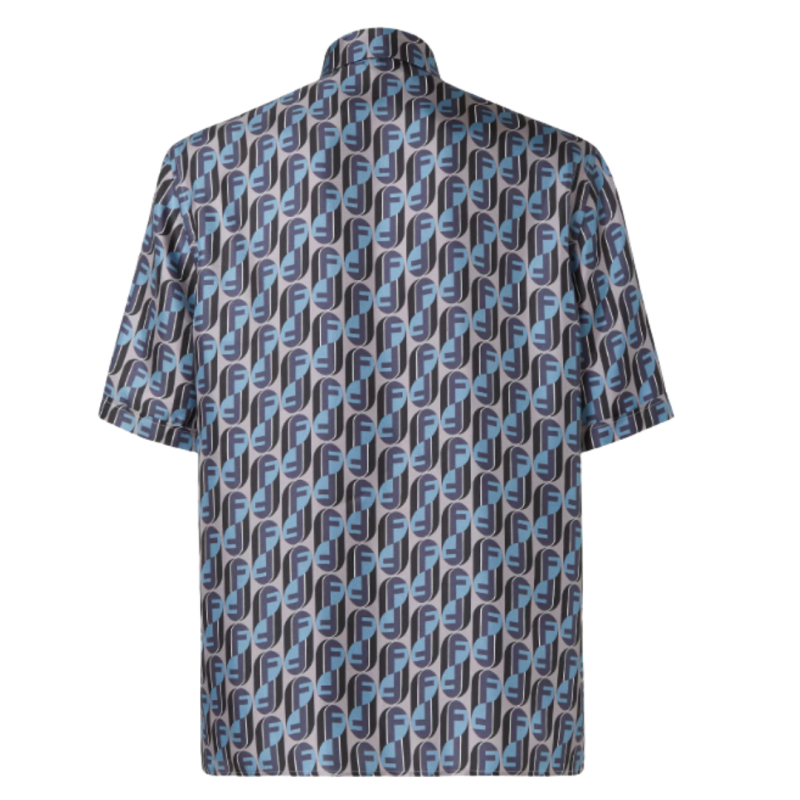 FENDIChemise manche courte col semi italien soie gris bleu multicolore Fendinity