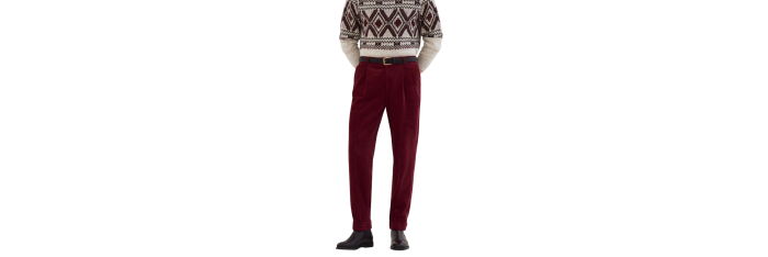 BRUNELLO CUCINELLIPantalon à pinces coton velours côtelé bordeaux