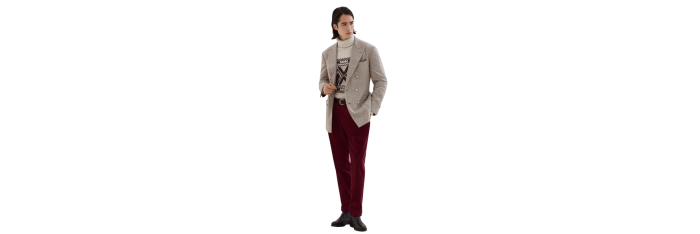 Le prestige des exécutions Brunello Cucinelli rehausse le style essentiel du pantalon à pinces coupe Leisure. L’esprit décontracté du vêtement s’exprime par le velours côtelé, teint en pièce pour un effet de couleur caractéristique. La coupe Leisure moderne est souple sur les hanches avec une taille légèrement basse, mais reste ajustée le long de la jambe.