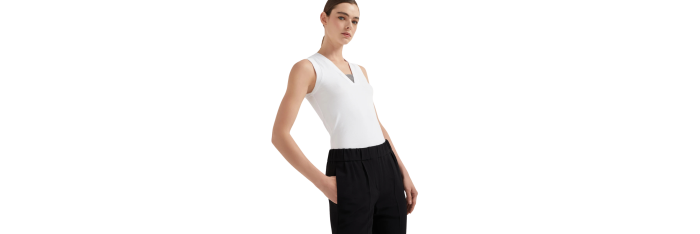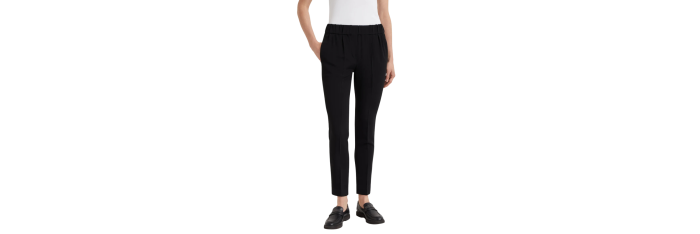Le crêpe cady de soie et acétate apporte une touche fluide et recherchée aux lignes essentielles du pantalon Tailored Jogger. La coupe droite est mise en valeur par les petites pinces qui s’adaptent au volume souple sur les hanches et droit le long de la jambe. L’élastique à la taille reprend la silhouette typique des pantalons de sport.