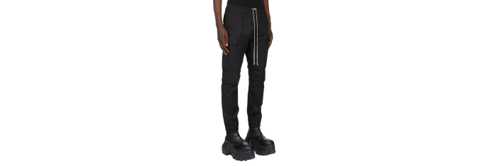 RICK OWENSPantalon FW25 Concordians Mastodon Megacargo popeline coton épais noir