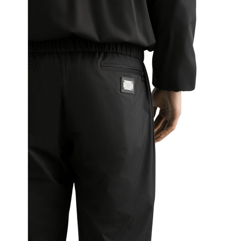DOLCE & GABBANAPantalon de jogging nylon léger noir cordon taille plaque logo
