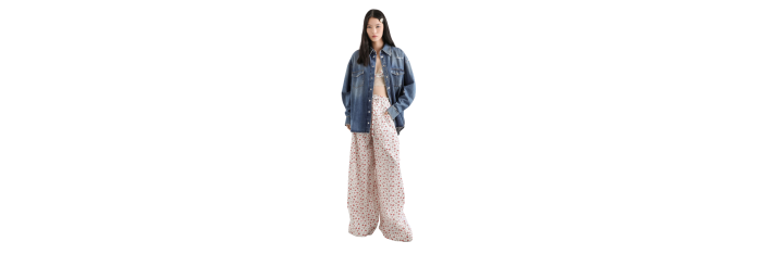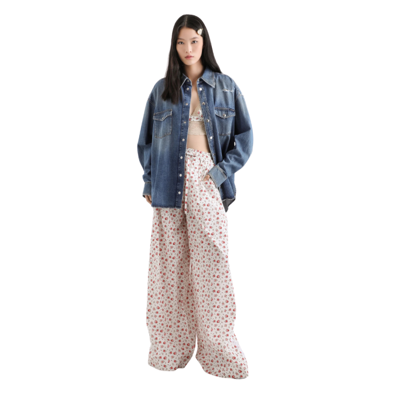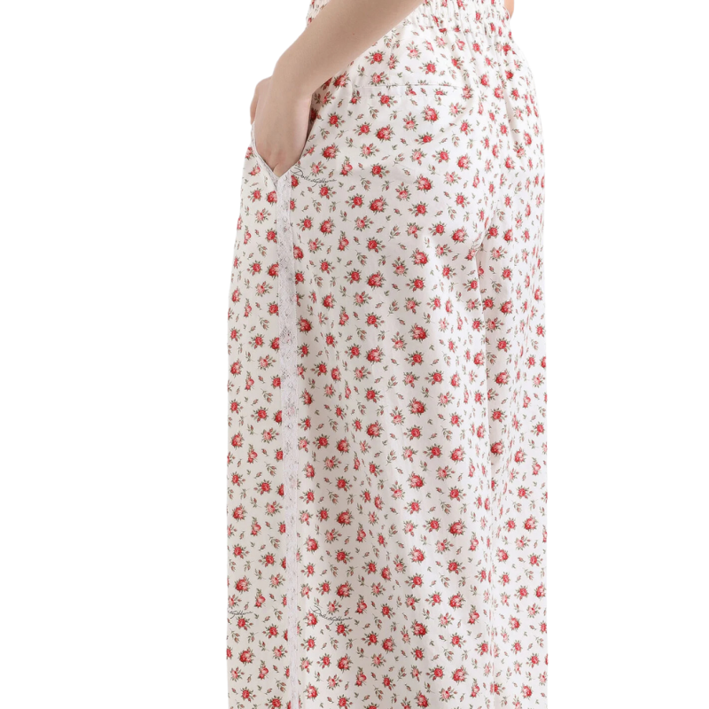 Ce pantalon incarne une élégance intemporelle, idéale pour celles qui recherchent style et confort. Confectionné en popeline à imprimé de petites roses délicates, il est parfait pour une allure sophistiquée et féminine.