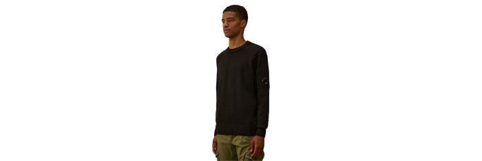Pull à col ras du cou confectionné en Lambswool GRS. Le Global Recycled Standard certifie l'utilisation de produits conformes à des critères environnementaux et sociaux étendus à toutes les étapes de la chaîne de production. Le pull présente la lentille emblématique de C.P. Company, des coutures contrastées et des bords-côtes aux poignets et à l'ourlet. Jauge 7. Coupe régulière.