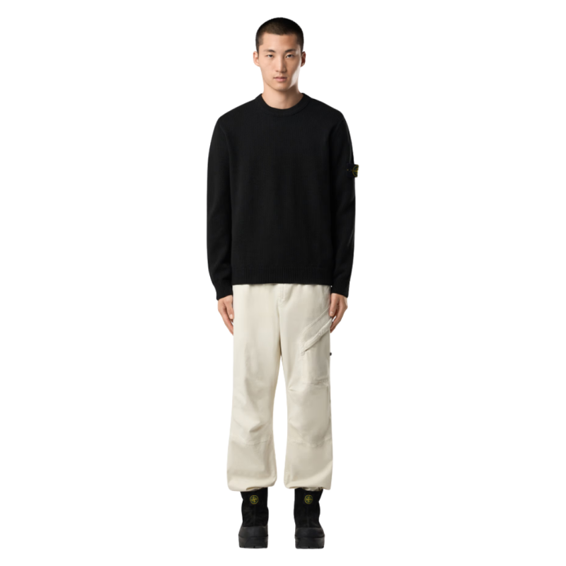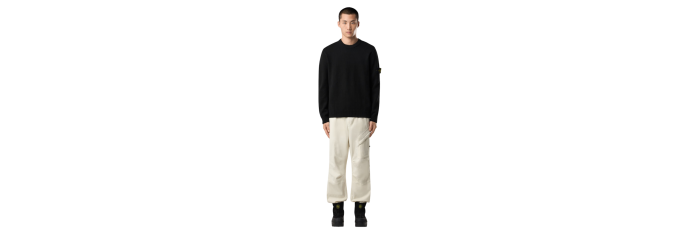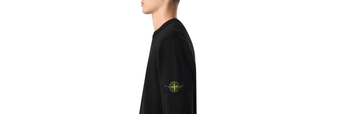 Encolure côtelée. Badge Stone Island sur la manche gauche. Poignets et bord inférieur côtelés. Coupe ample.