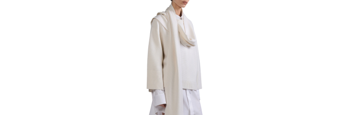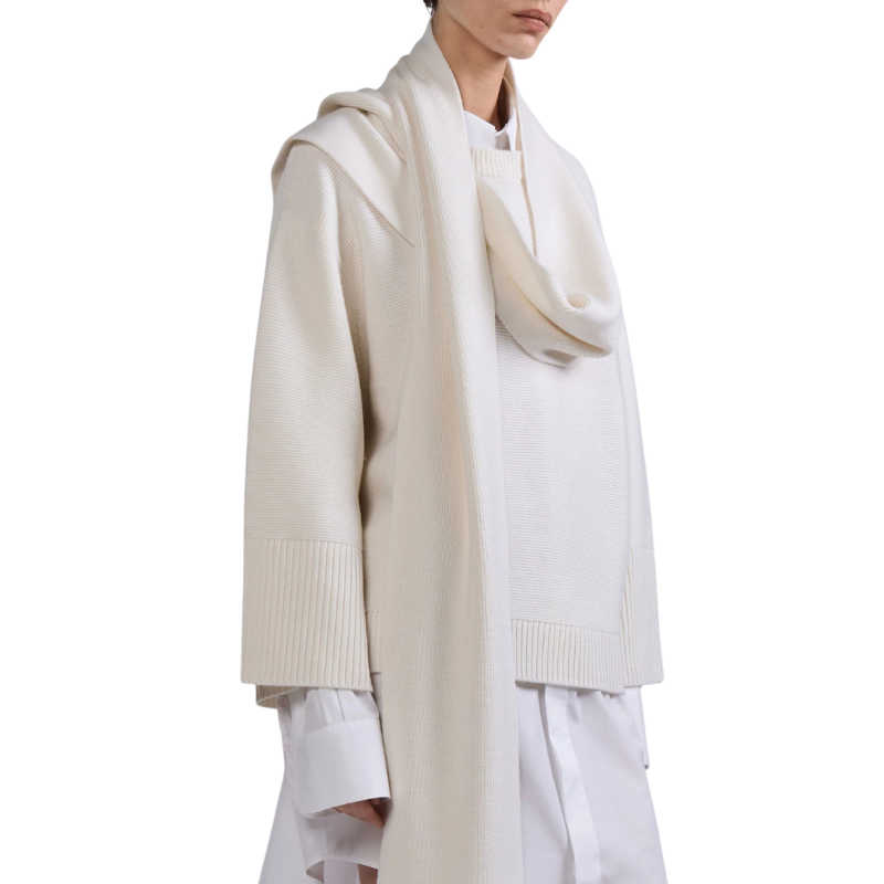 BARBARA BUIPull col rond manche large laine mérinos beige écharpe