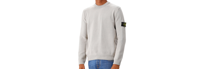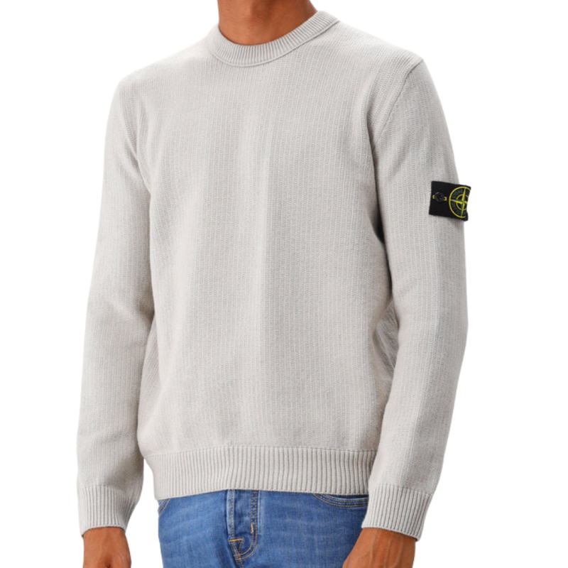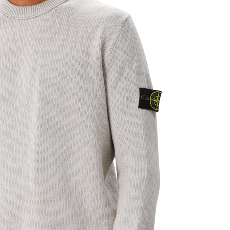 STONE ISLANDPull col rond coton mélangé côtelé chevrons gris perle