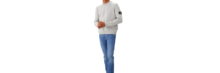 Encolure côtelée. Badge Stone Island sur la manche gauche. Poignets et bord inférieur côtelés. Coupe ample.