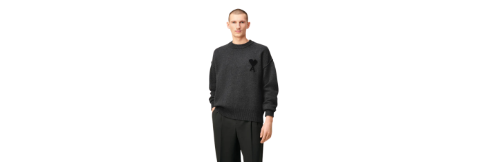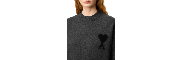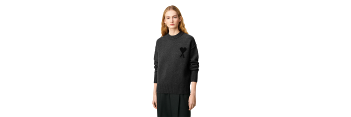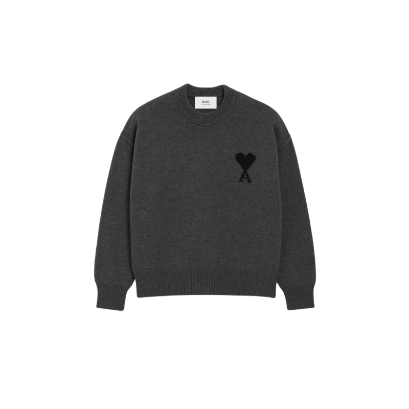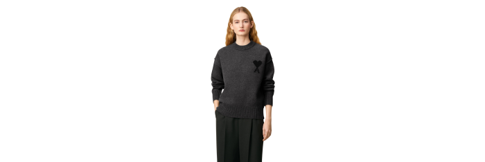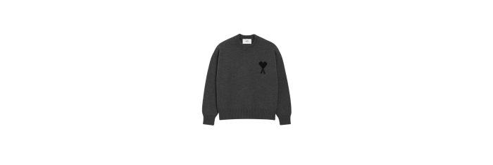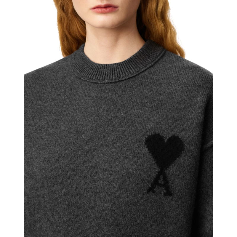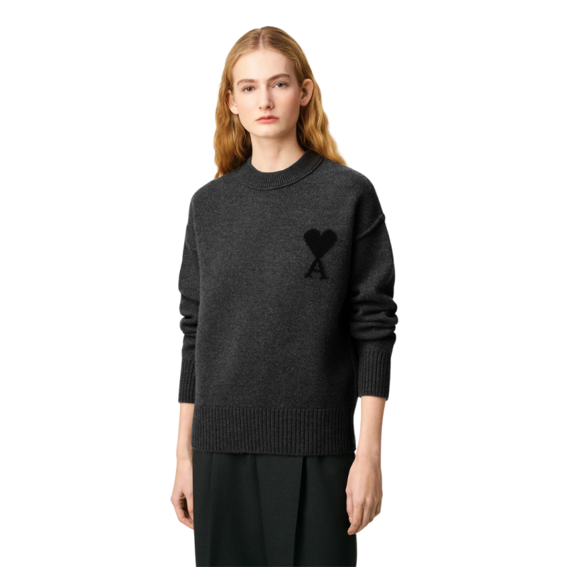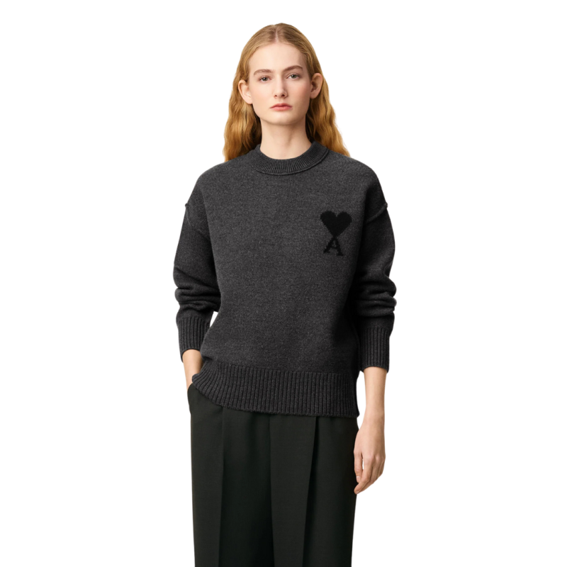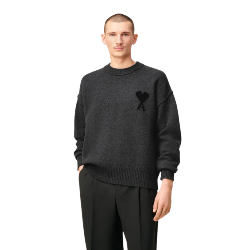AMI ParisPull col rond laine gris anthracite cœur noir