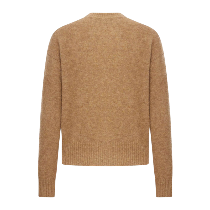 AMI ParisPull col rond maille laine alpaga camel broderie Ami