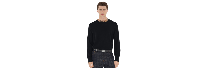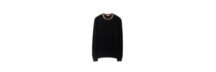 Ce pull à col ras du cou est confectionné en laine légère avec une coupe droite. La pièce est ornée des carreaux Burberry Check à l'encolure, dans notre emblématique teinte sable.