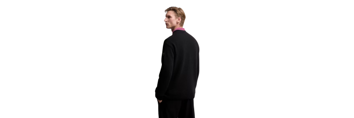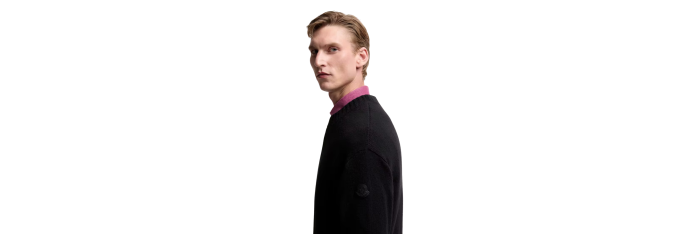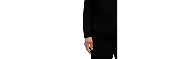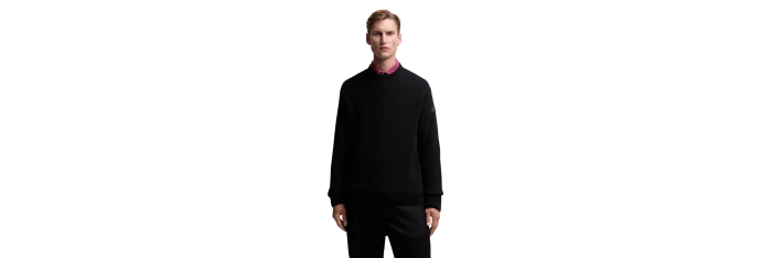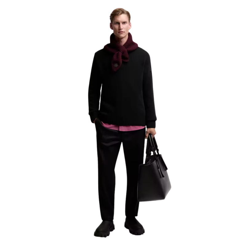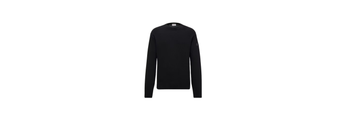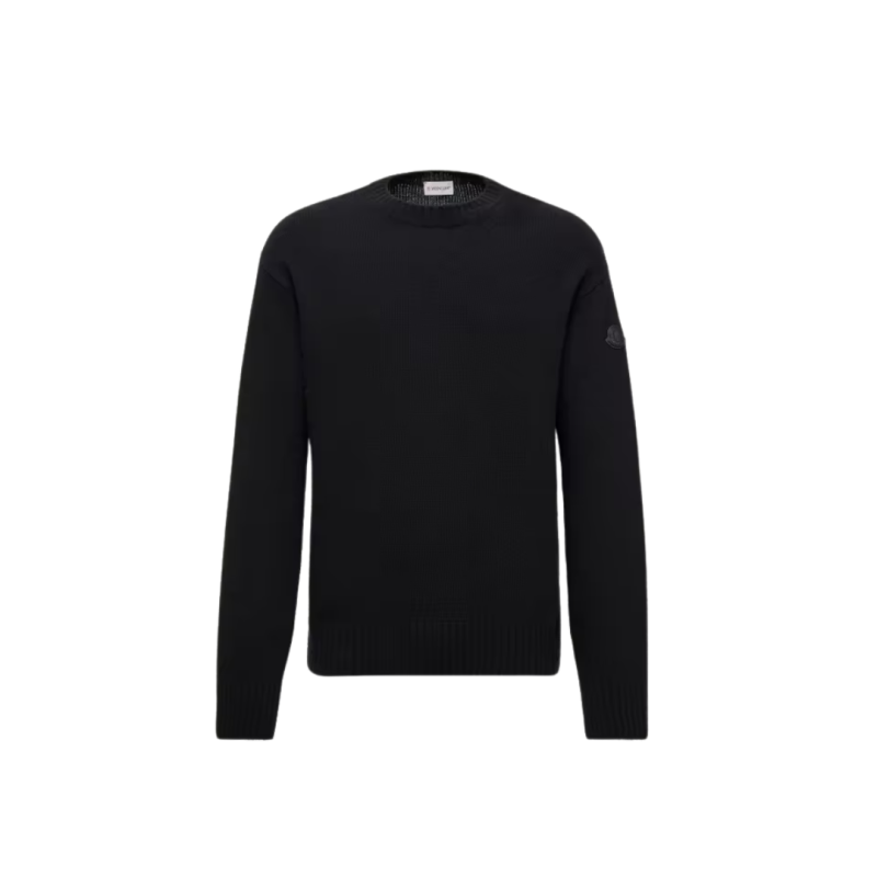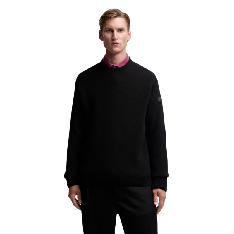 MONCLERPull col rond laine cachemire noir logo cuir ton sur ton