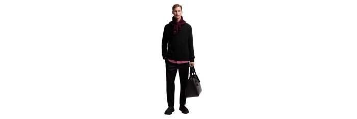 TISSU DE BASE: 90% Laine Vierge, 10% Cachemire;ÉTIQUETTE EN CUIR: VACHE