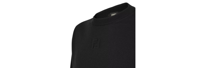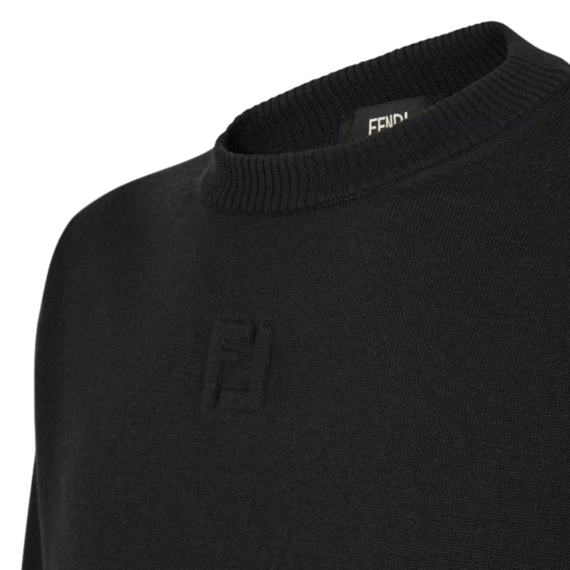 FENDIPull col rond classique laine noire détails FF embossé poitrine col
